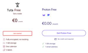 Cele două opțiuni au și planuri free Tuta de 1GB iar Proton începând cu 500MB, ambele oferind securitate End-to-end encryption.